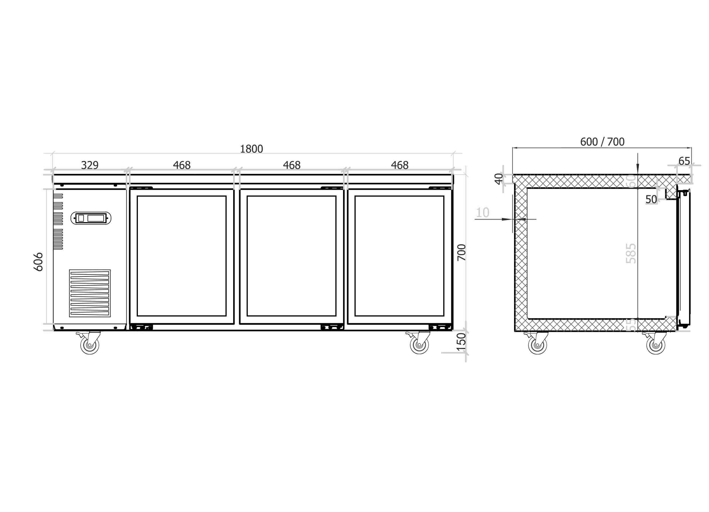 BESTTOP Under Bench Glass Door Fridge 1800mm/CUR18-3SG
